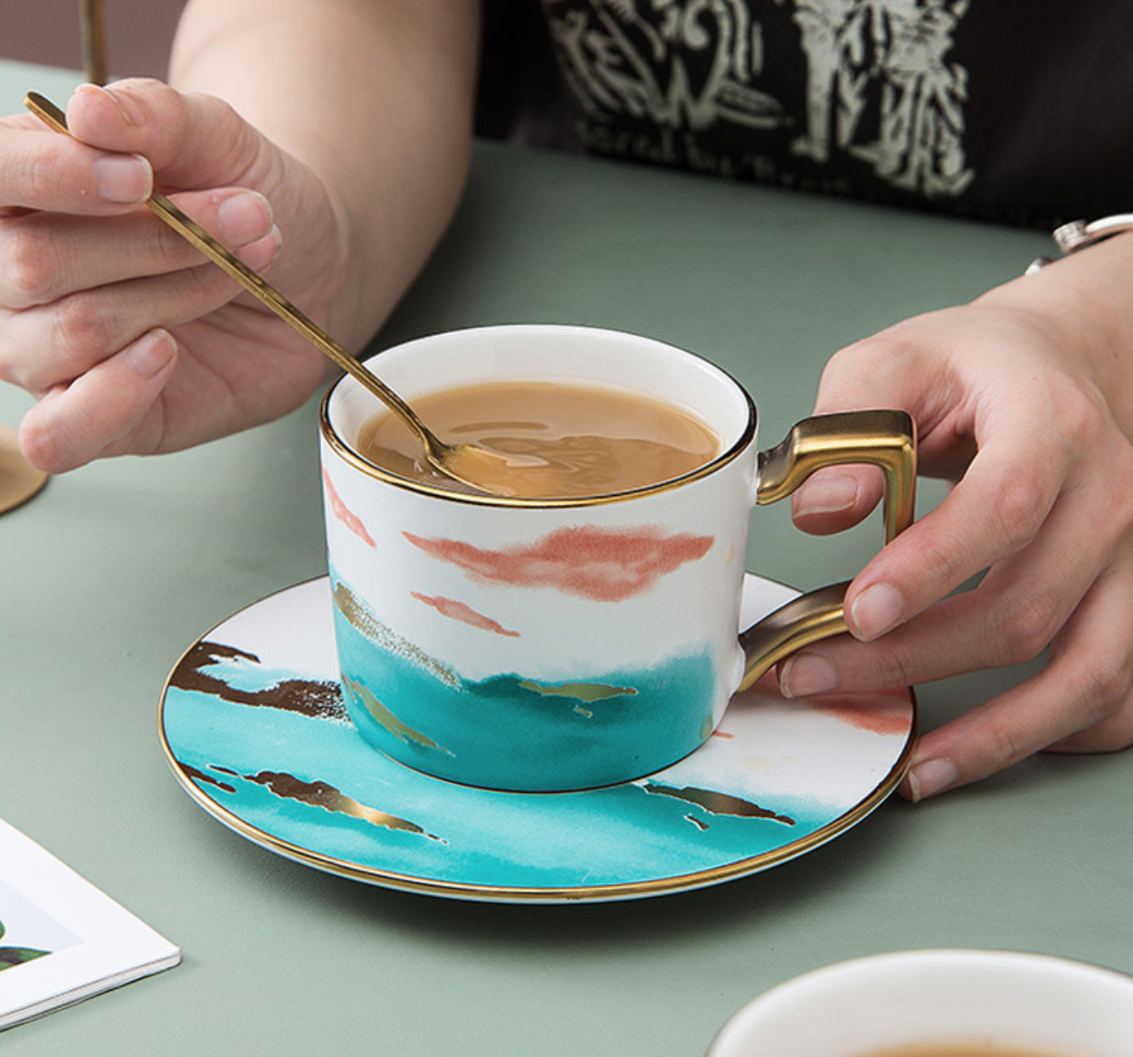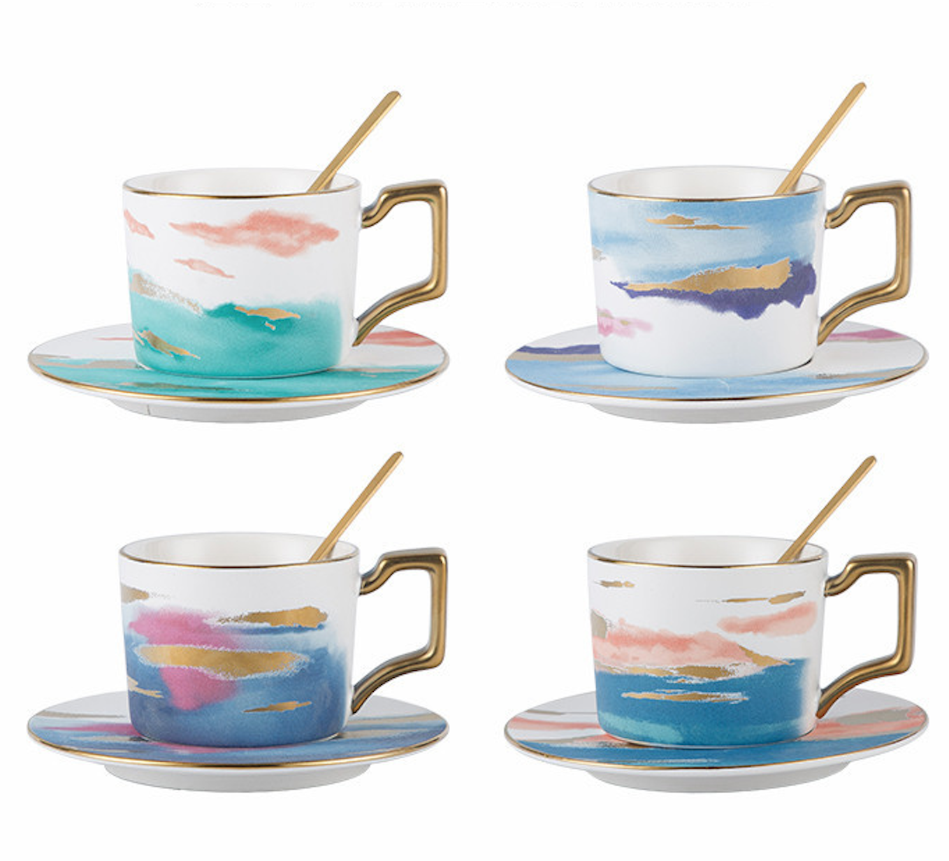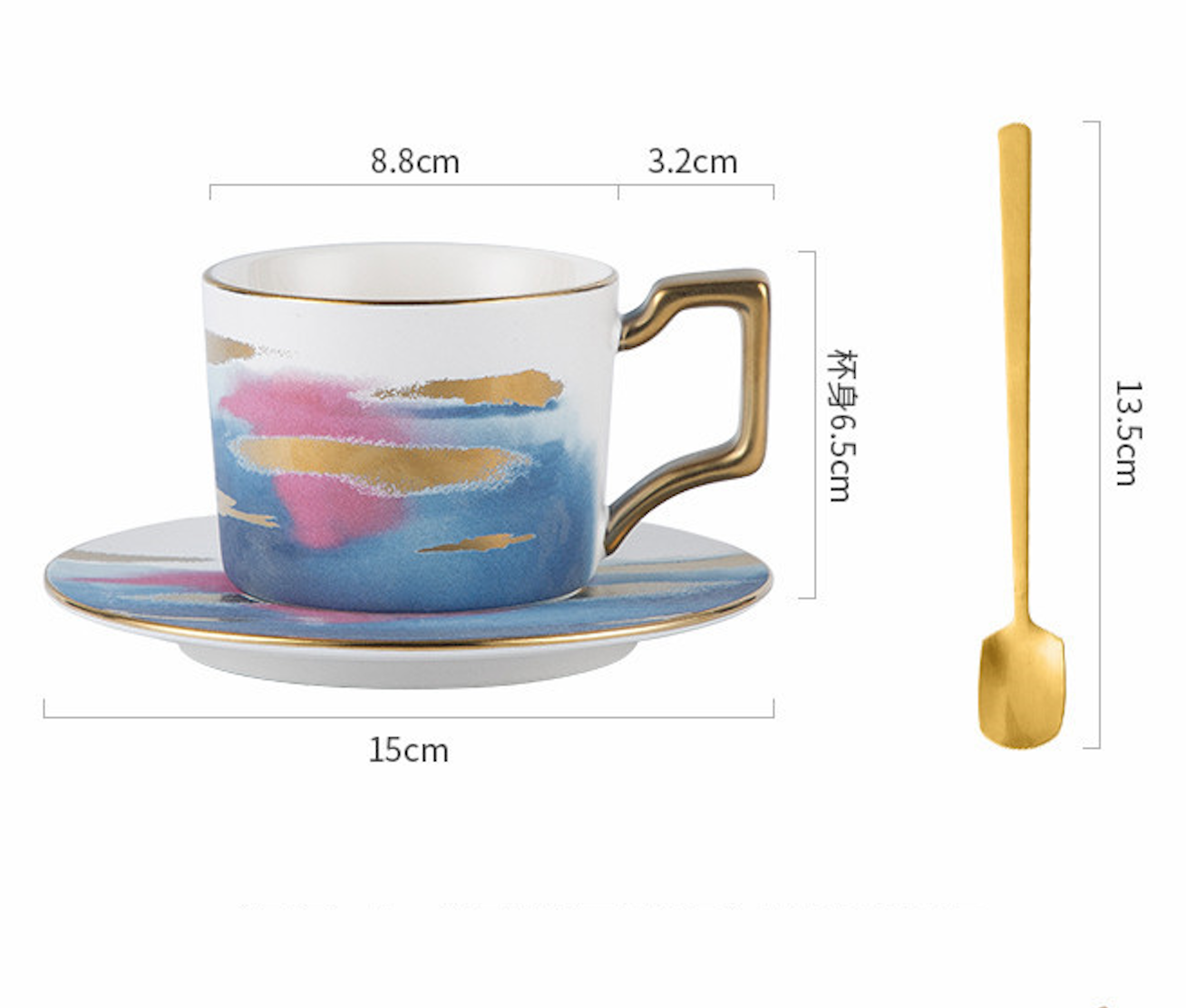 ชุดถ้วยเซรามิค + ที่รอง + ช้อน