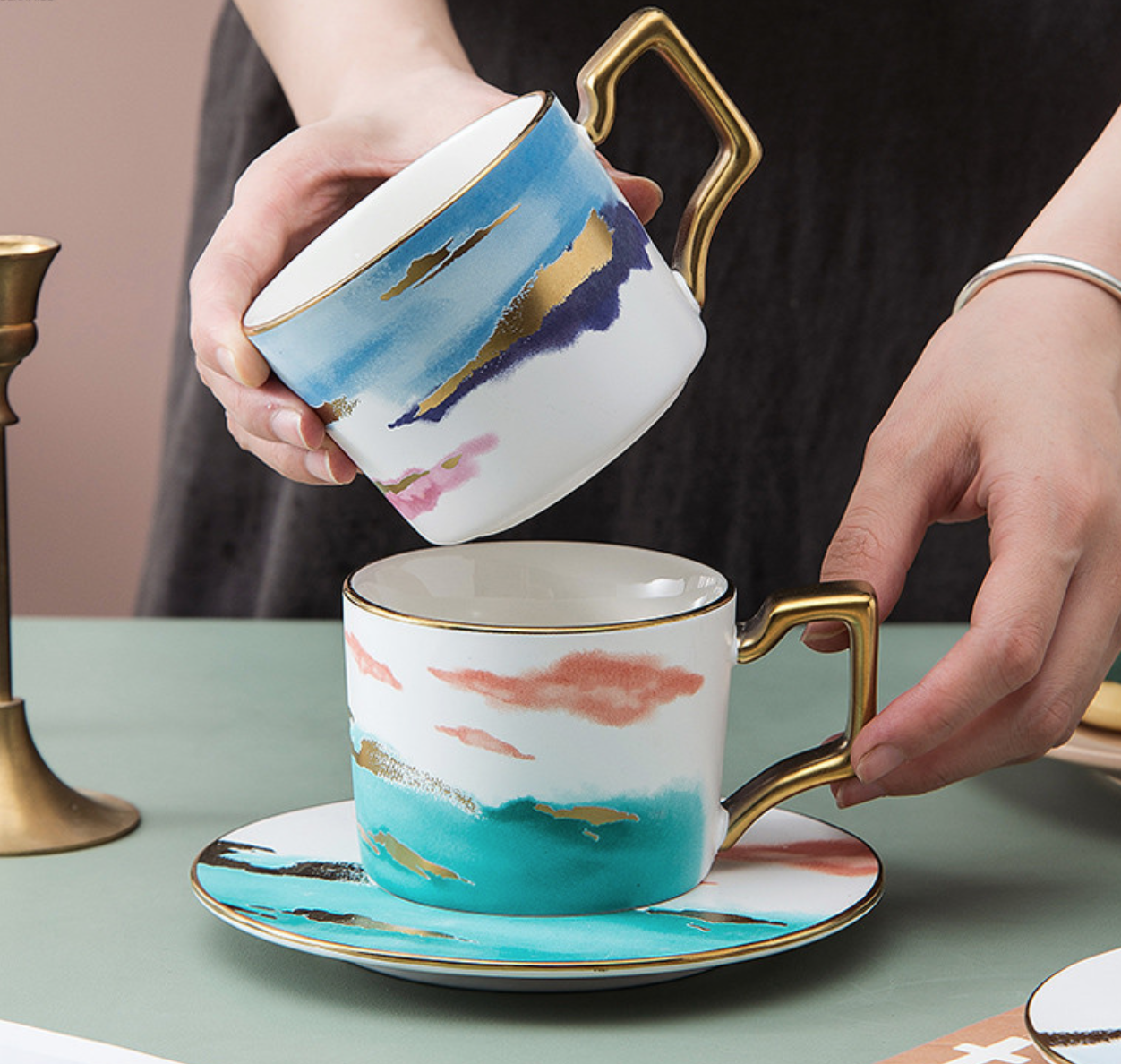 ถ้วยเซรามิก + จานรอง