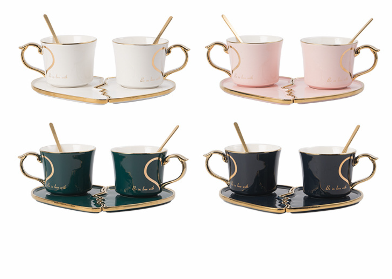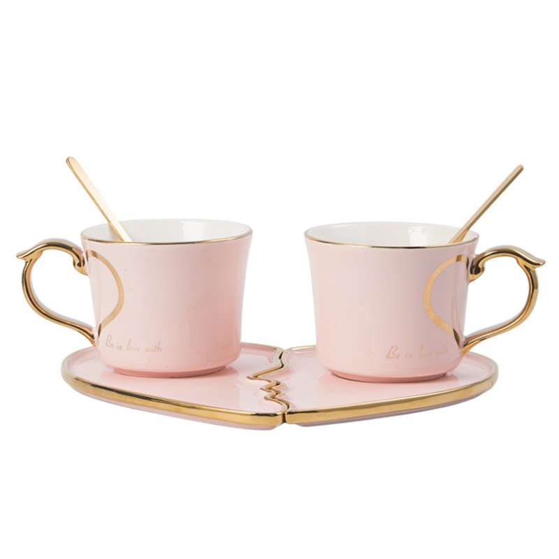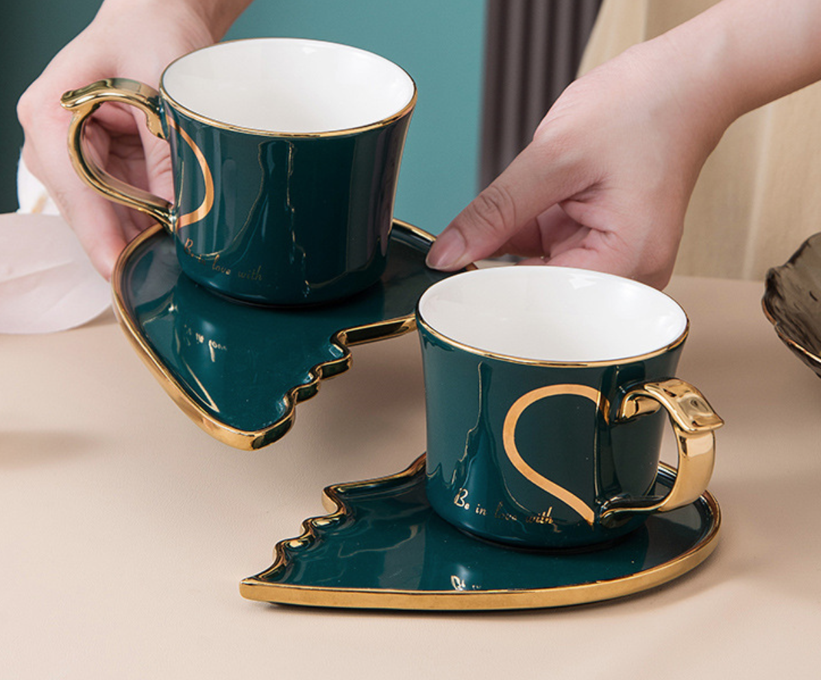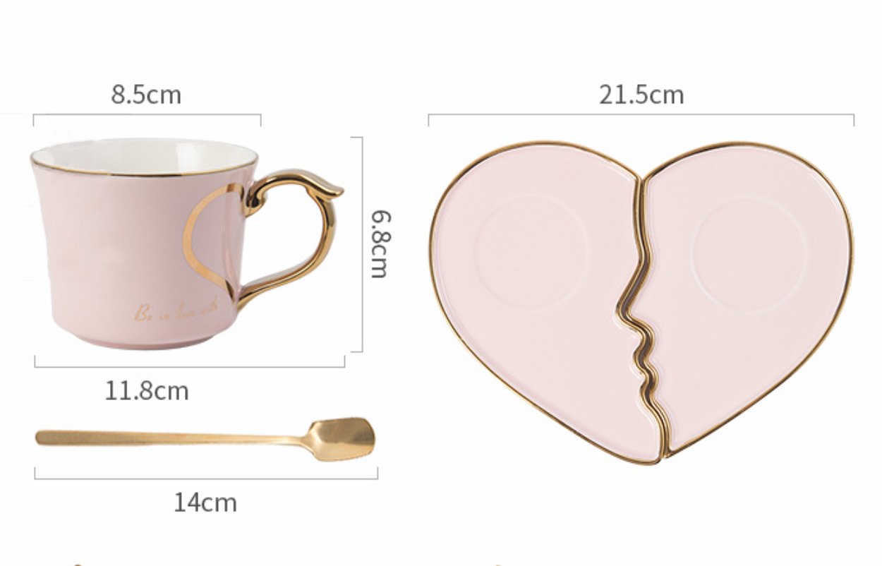 ชุดถ้วยคู่เซรามิค + ที่รอง + ช้อน