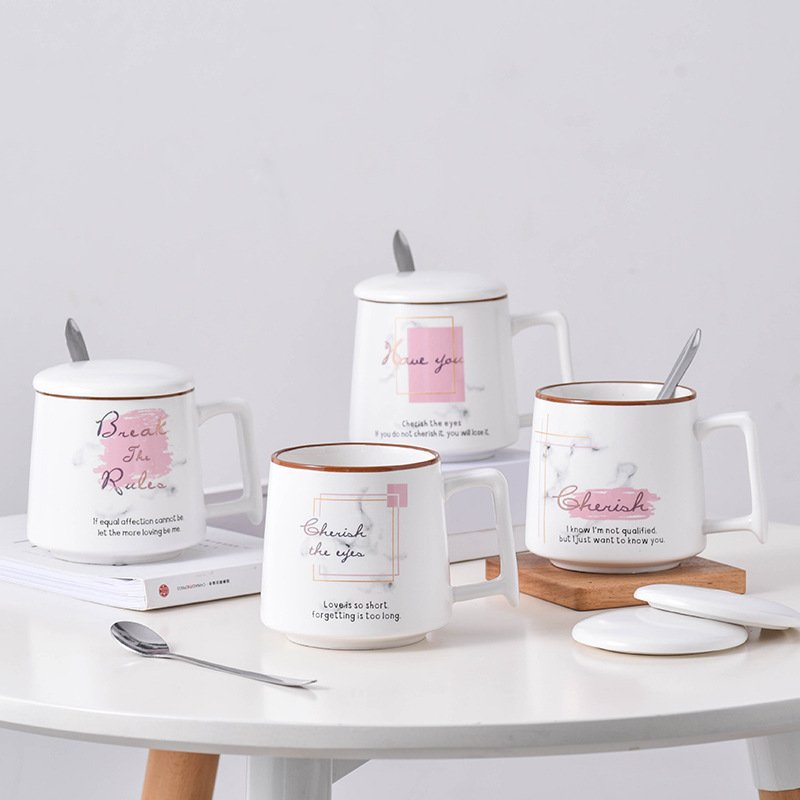 ชื่อ: ชุดถ้วยเซรามิค + ช้อน + ฝา